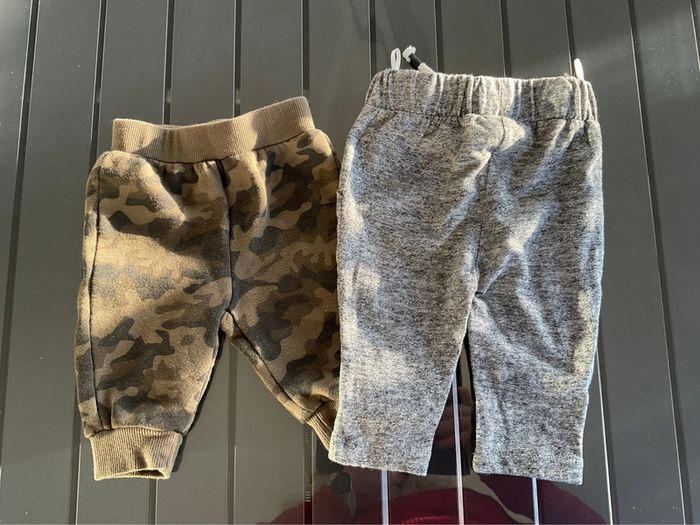 1 jogging gris et 1 jogging camouflage kaki Taille 3 mois
