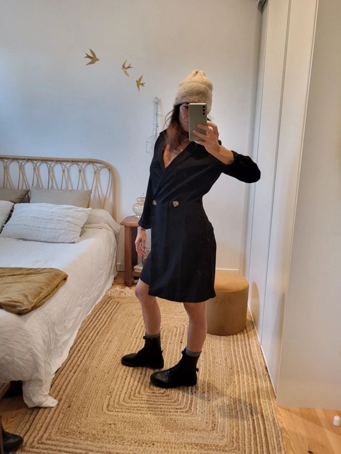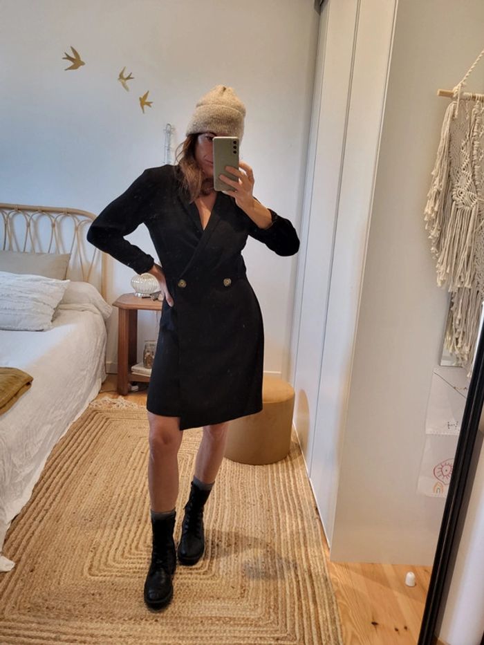 Robe blazer noir mi longue en parfait etat. S'ouvre et se ferme avec une fermeture éclaire sur le côté. Boutons decoratifs Achetée chez Mango. Peut se porter pour toutes circonstances #blazer #mango #robeblazer #robenoir