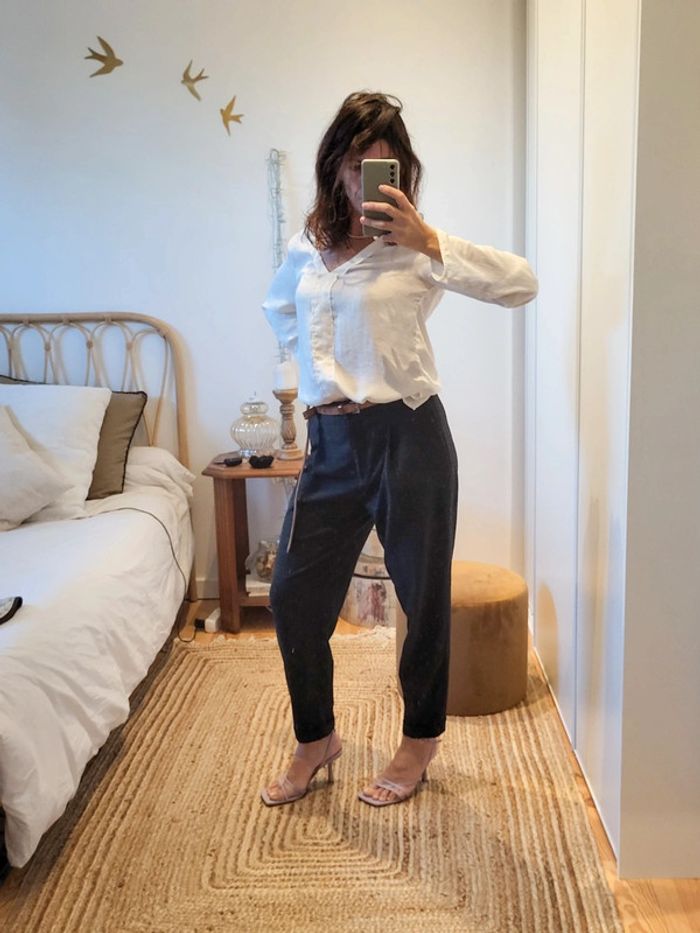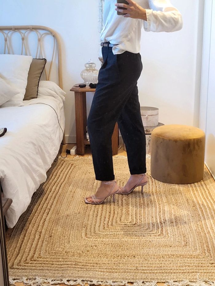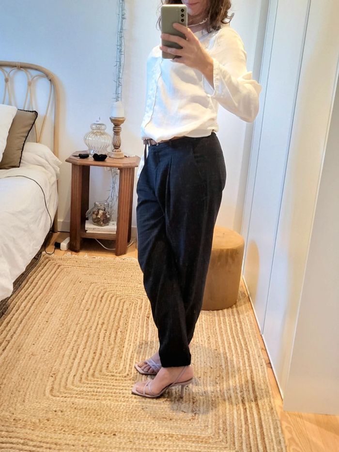 Pantalon carotte bleu et noir Taille élastique Deux poches sur le côté Matiere hyper confortable