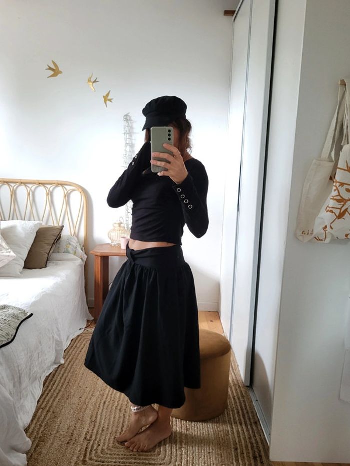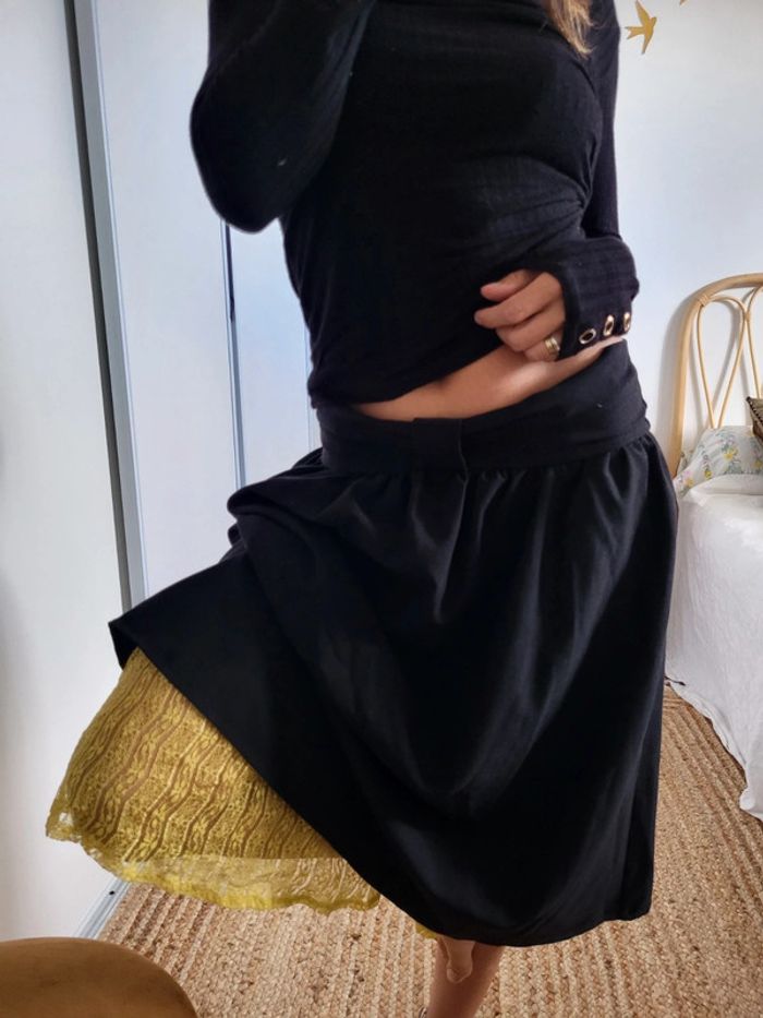 Jupe noire longue doublée dentelle jaune Taille M En parfait etat