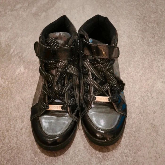 Baskets hautes Baskets à scratchs Taille 37 Noires et Argentées brillantes À peine portées Taille 37 #tiffanyostertag_chaussuresfemme37 #tiffanyostertag_femmeXS34 #tiffanyostertag_femmeS36 #tiffanyostertag_femmeM38