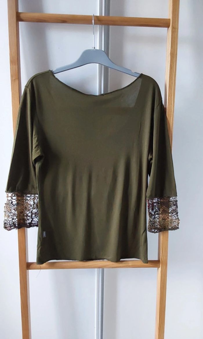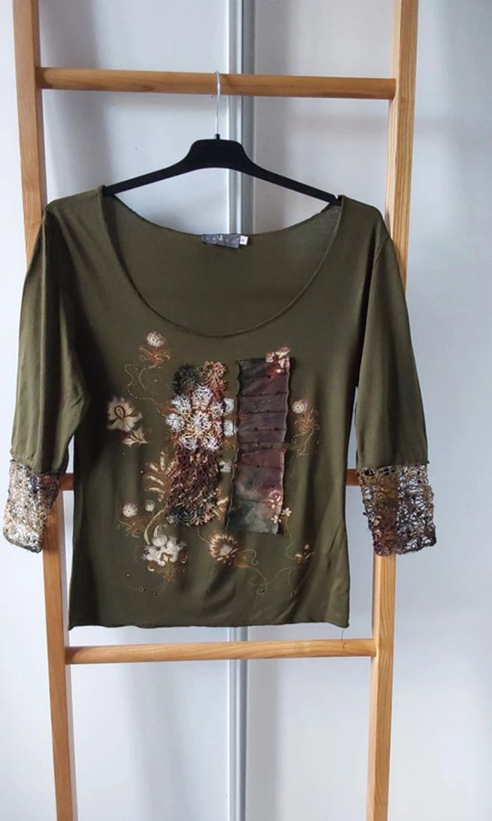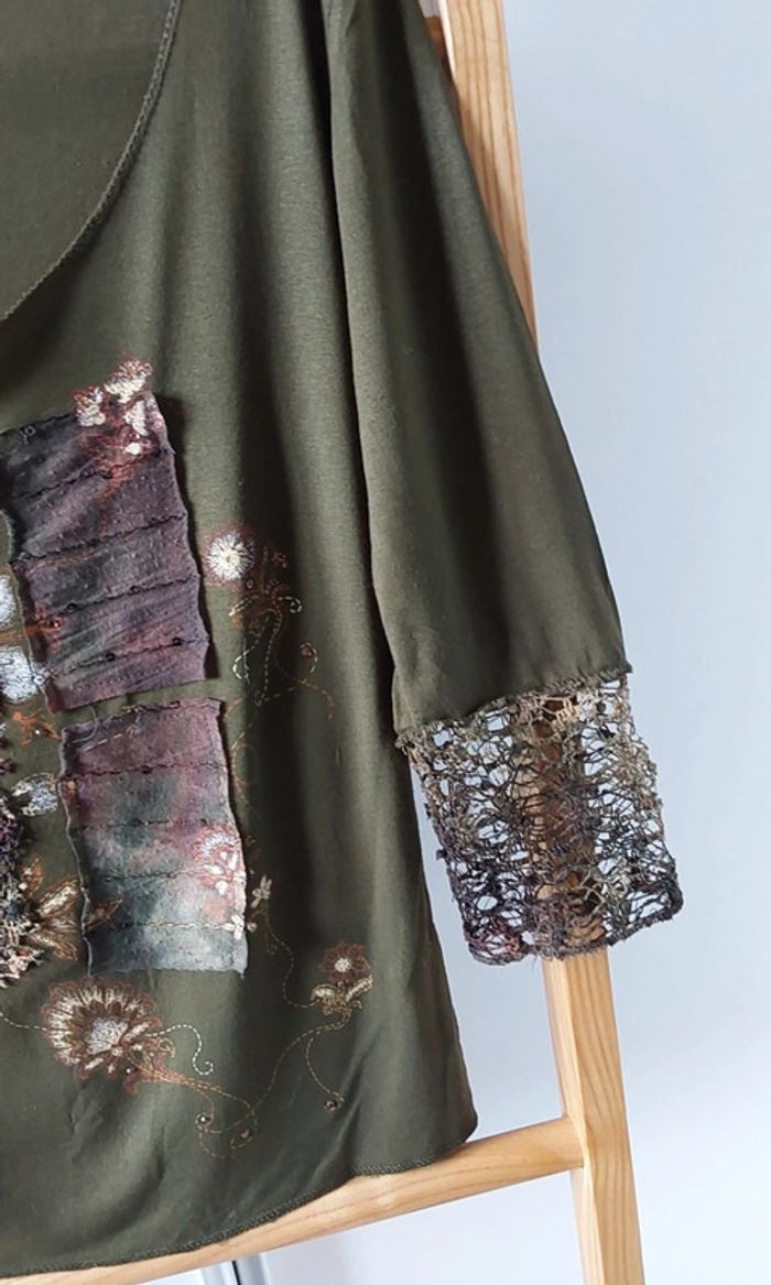 Haut kaki  patchwork marron beige Vintage  T 38 - photo numéro 2