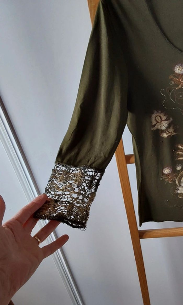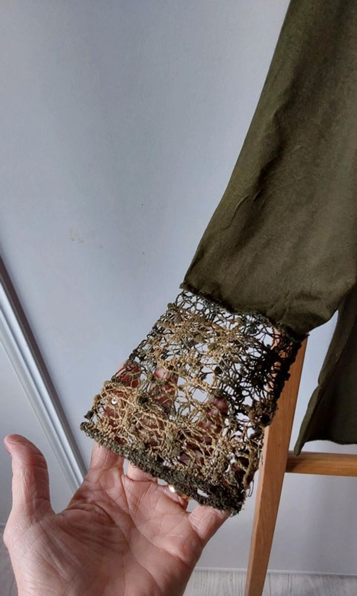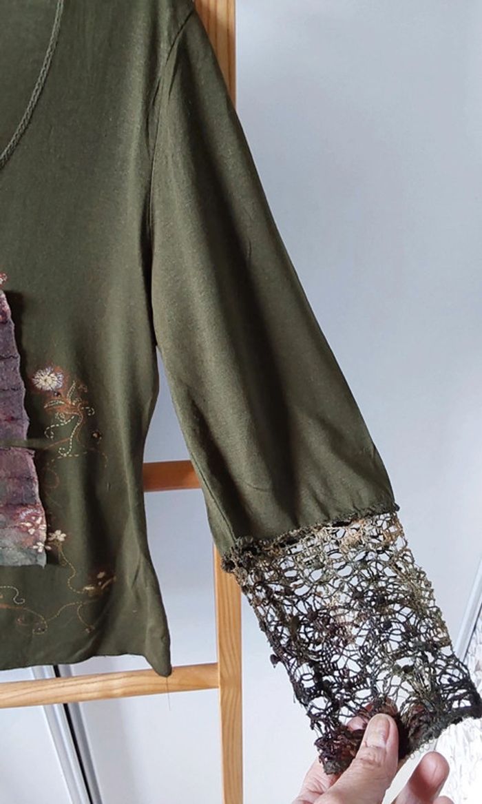 Haut kaki  patchwork marron beige Vintage  T 38 - photo numéro 11