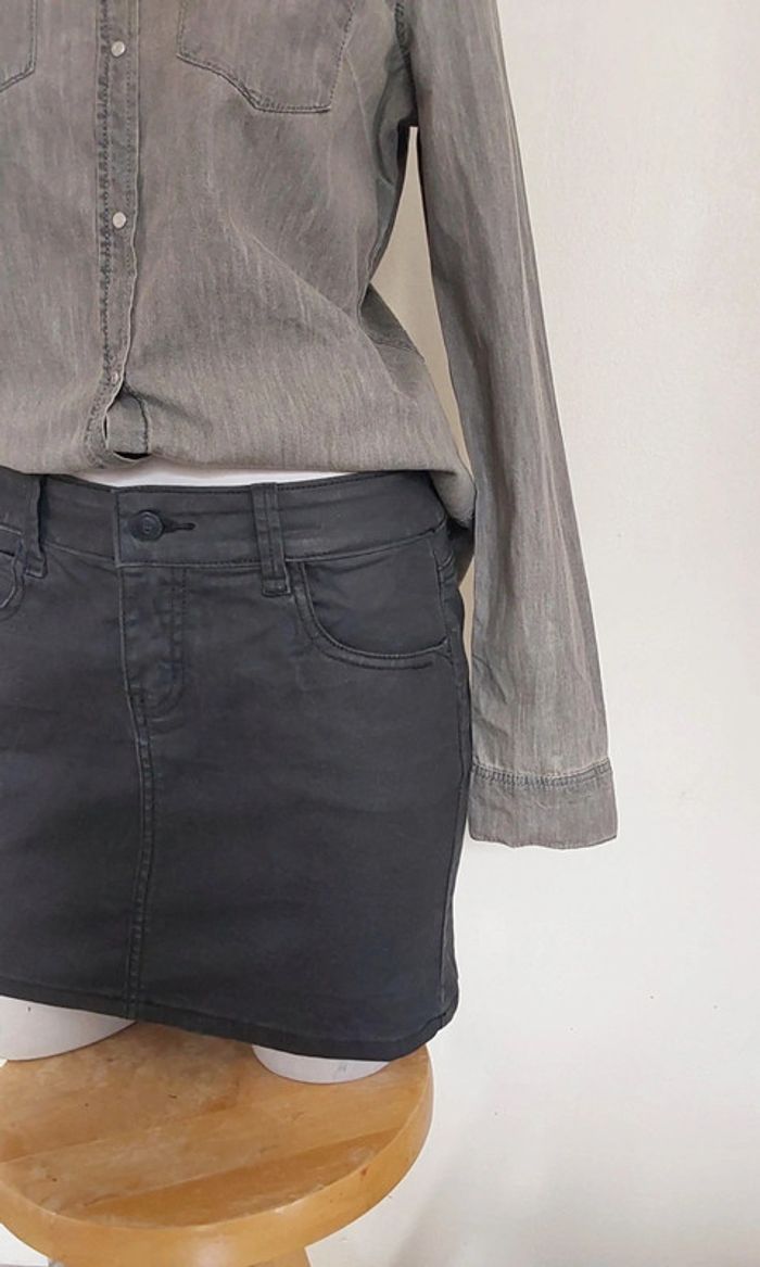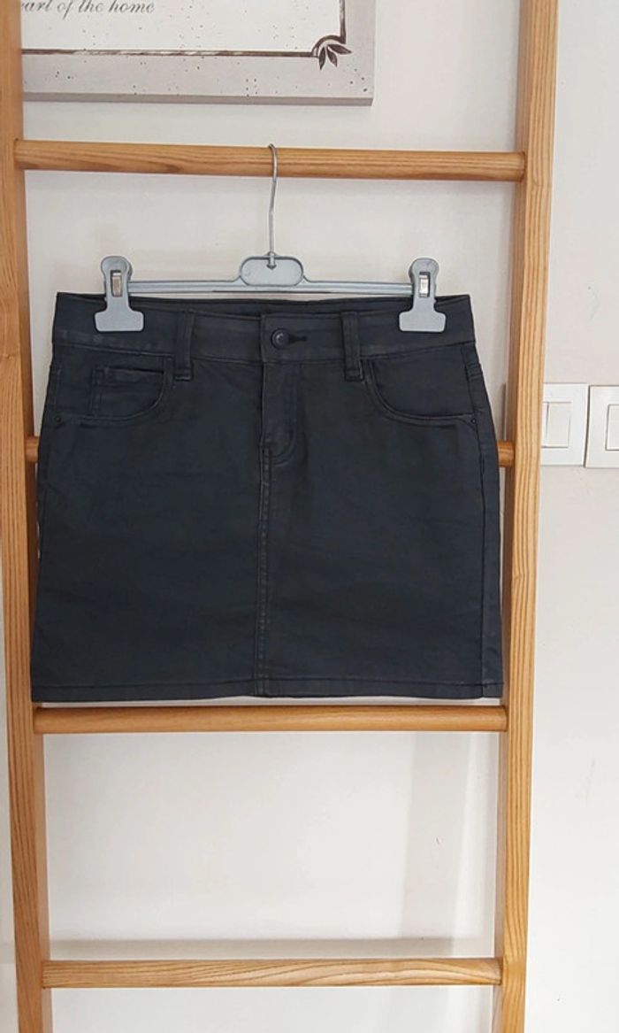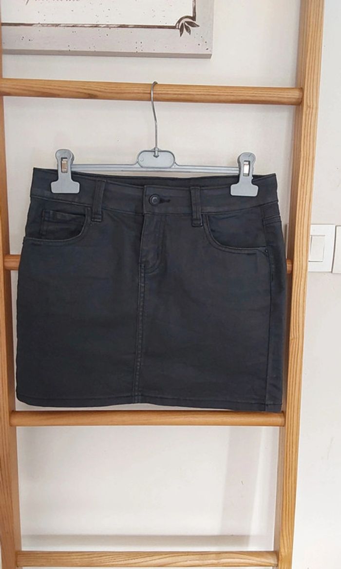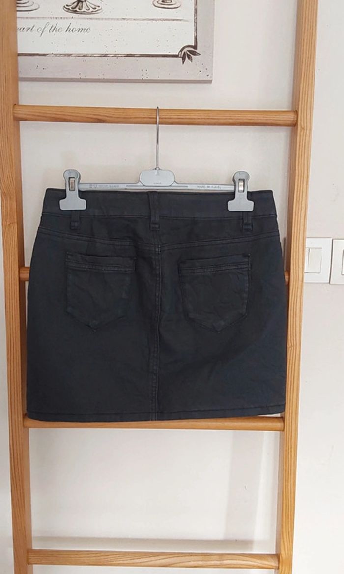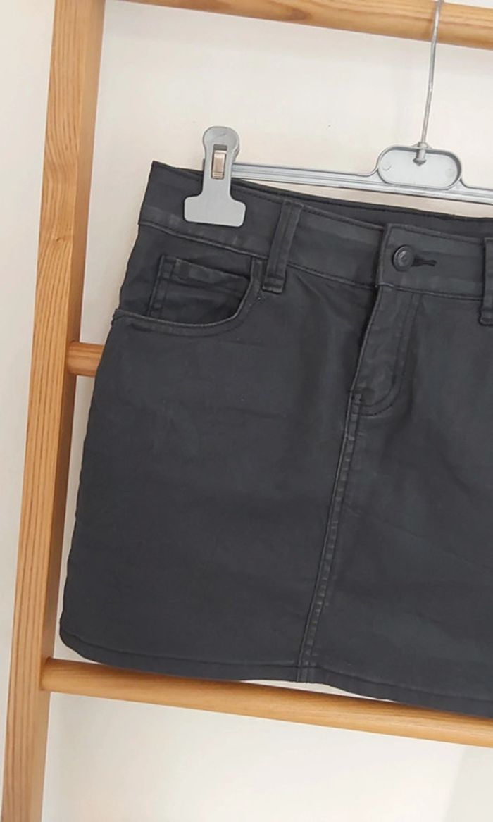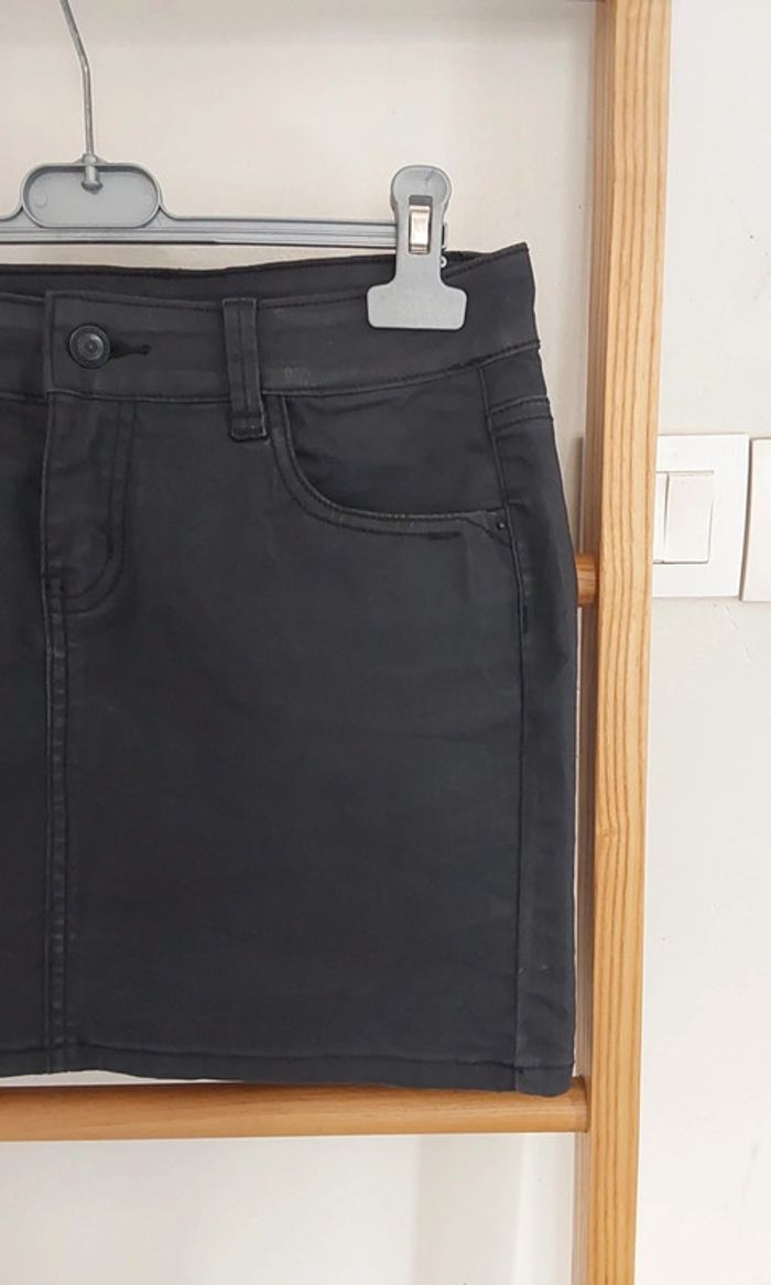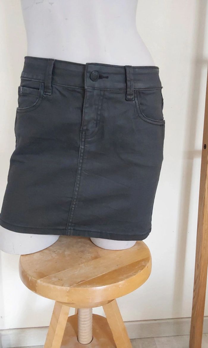 Mini-jupe noire Pimkie T 36 Mini-jupe noire aspect coton ciré Taille à plat 36/37 cm Longueur 37 cm #legrenierdeprovence36 #minijupenoire36