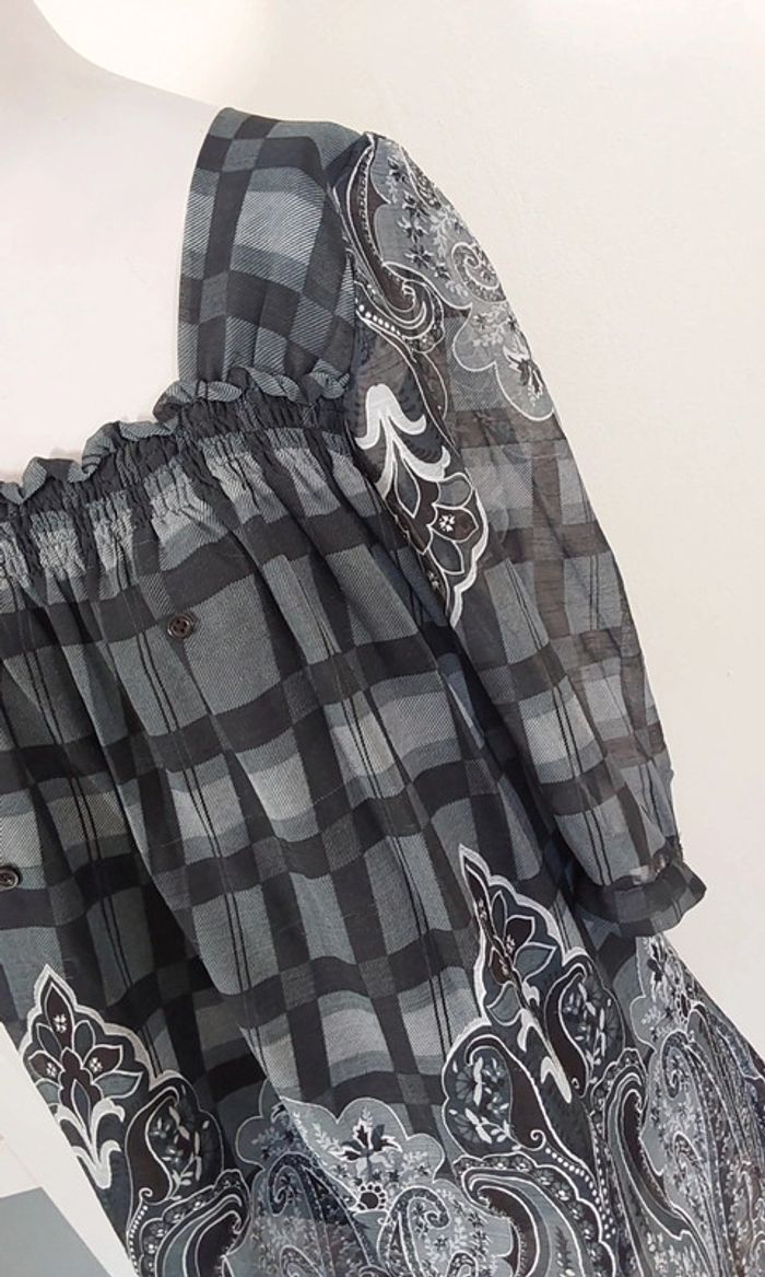 Tunique en voile imprimé gris noir ,doublé satin noir Peut se porter en tunique très sympa avec un jean ,leggings....ou en robe courte .... Manches 3/4 Longueur 78 cm Aisselles à aisselles environ 45 cm Un cordon permet d ajuster à la taille Pour un effet plus ou moins Ceintré... #legrenierdeprovence40 #legrenierdeprovence38 #hippiechic #robeboheme #vintage airycore #y2k #witchy #robe32 #wicca #fairycore #fairy #champêtre #nature #shabby #manga #fantastique #genshin #waifu #goddessstory #animegirl #anime #manga #rock #grunge