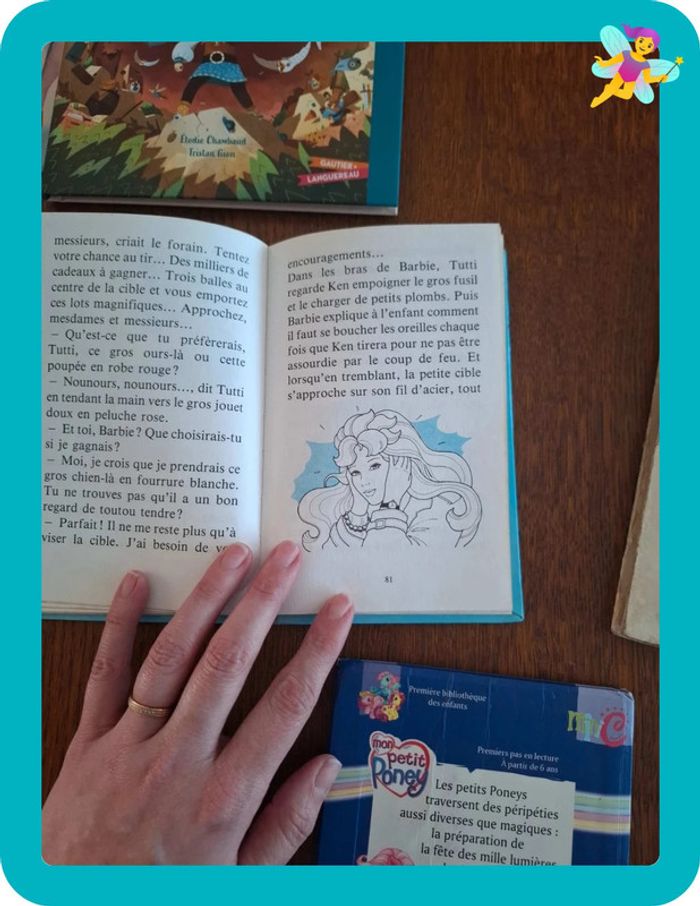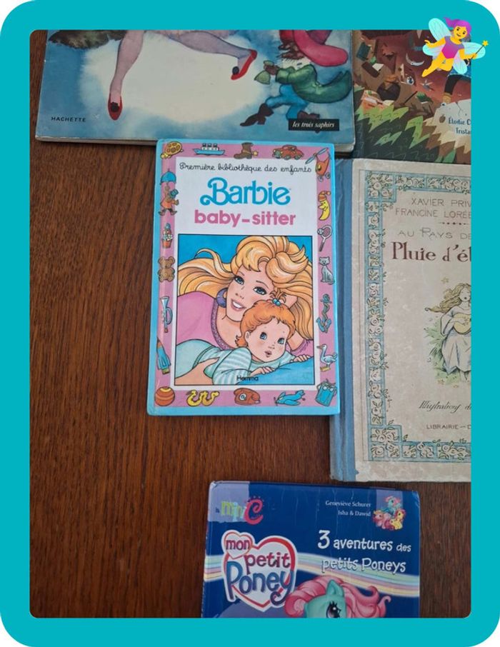 Lot de 5 livres pour enfant qui vont de très bon état à état moyen La petite lectrice 3 aventures des petits poneys de mon petit poney Au pays des fees pluie d'étoiles Barbie baby sitter Les chaussons rouges #sophiebouetlivres #lotdelivres
