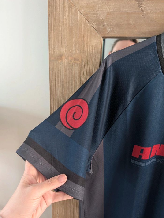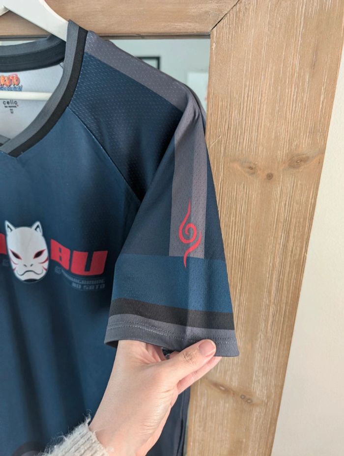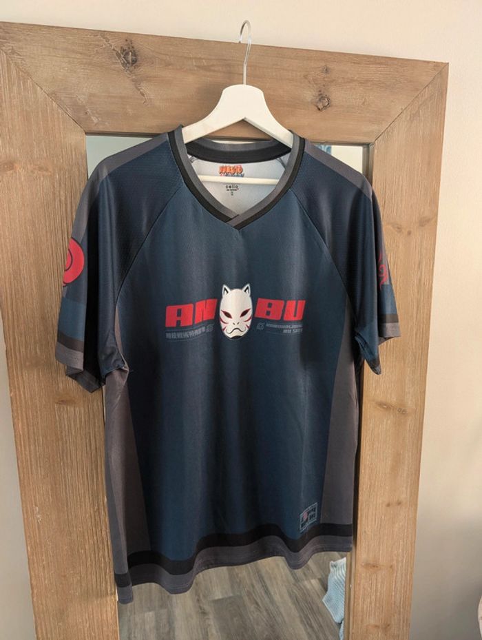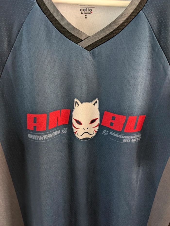 Excellent état. Prix d'achat 24€99. Collab exclusive Celio. T-shirt bleu marine, avec col en V et manches courtes. Sur le devant, le masque de l’unité d’élite Anbu. D'autres t-shirts gaming manga dans mon dressing.