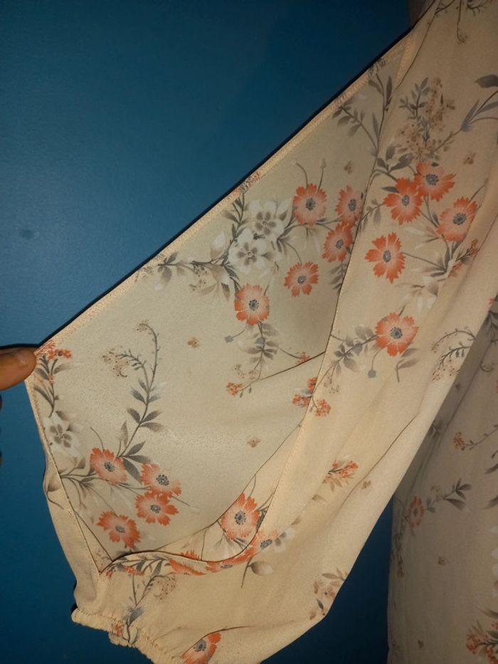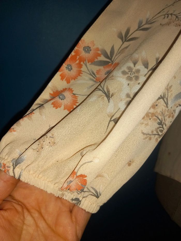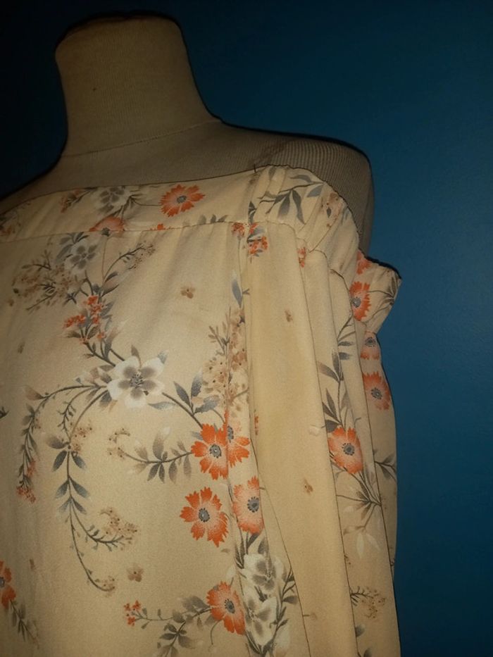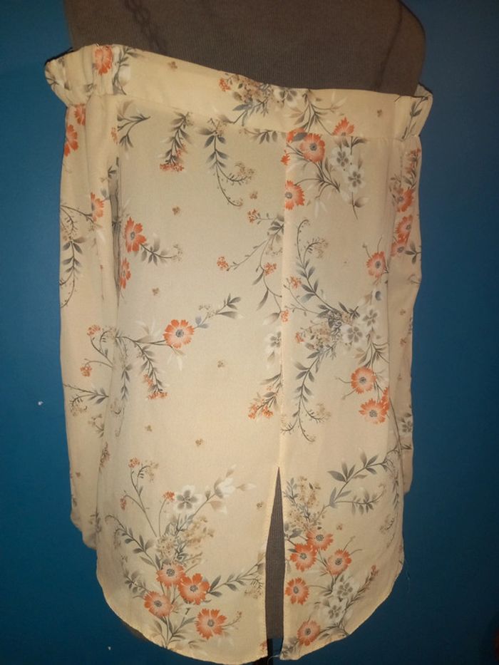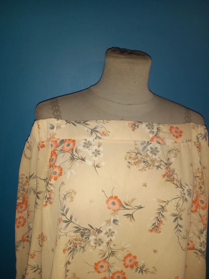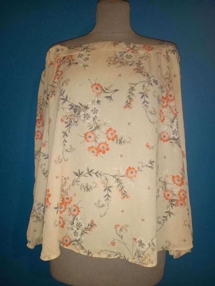 Blouse taille 42 Marque : atmosphère Couleur crème et fleurie Manches avec fentes tout le long ! Encolure bateau et épaules dénudées. Fente à l'arrière