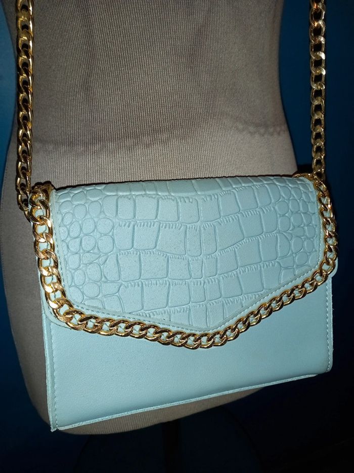 Sac à main turquoise Avec chaîne dorée A porter en bandoulière