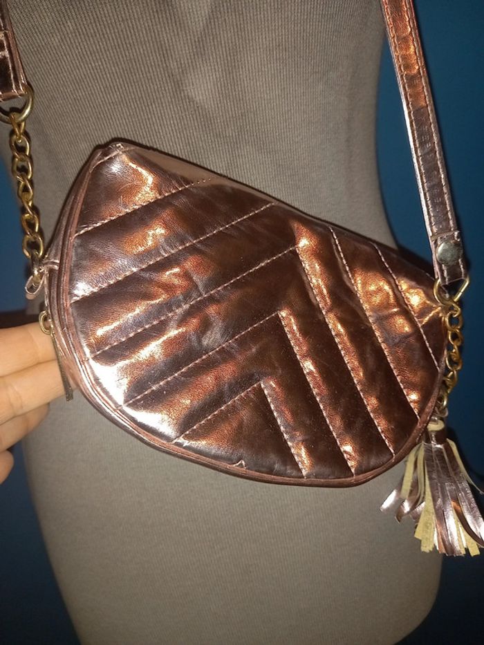 Sac avec bandoulière Rose métallique Avec pompon Intérieur légèrement tachée mais rien de méchant