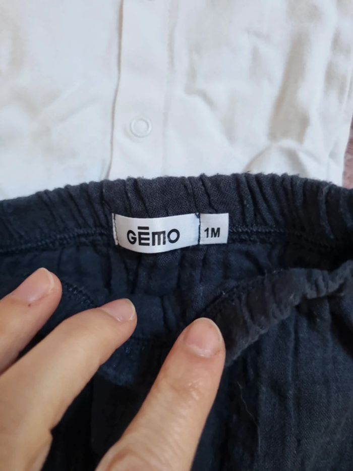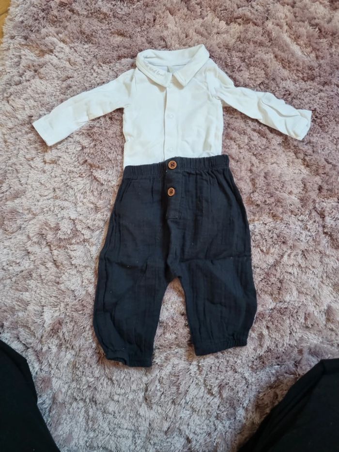 Body habillé manches longues blanc orchestra 1 mois Pantalon gaz de coton marine taille 1 mois Gemo