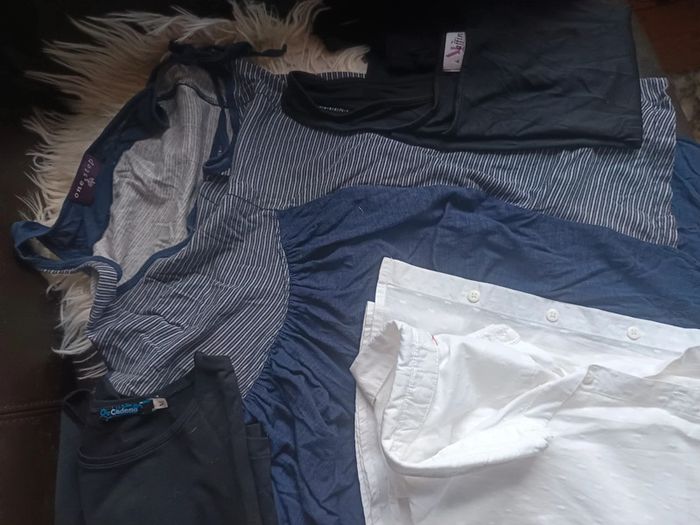 1 robe d'été one step 1 t-shirt noir 1 débardeur noir 1 chemisier sans manches blanc + 1 🎁 offert dans votre colis, choisi au hasard dans le lot par moi même Lot indissociable, pas de photos supplémentaires, pas de négociation Lire ma bio #lotfemme38