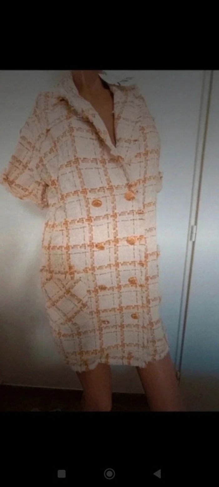 Robe type veste/chemise à carreaux jaunes et blancs, poches Toute neuve étiquetée #mariol69110femme38