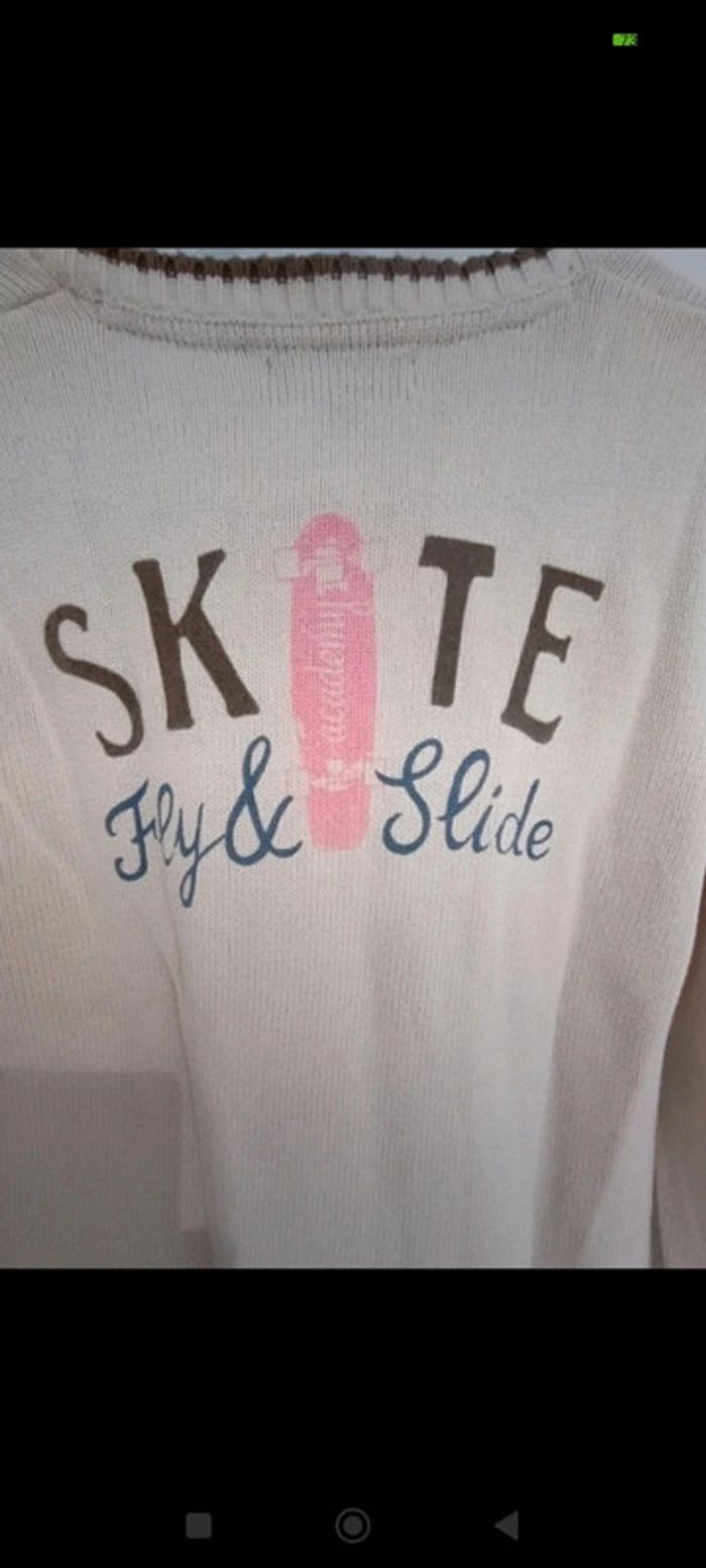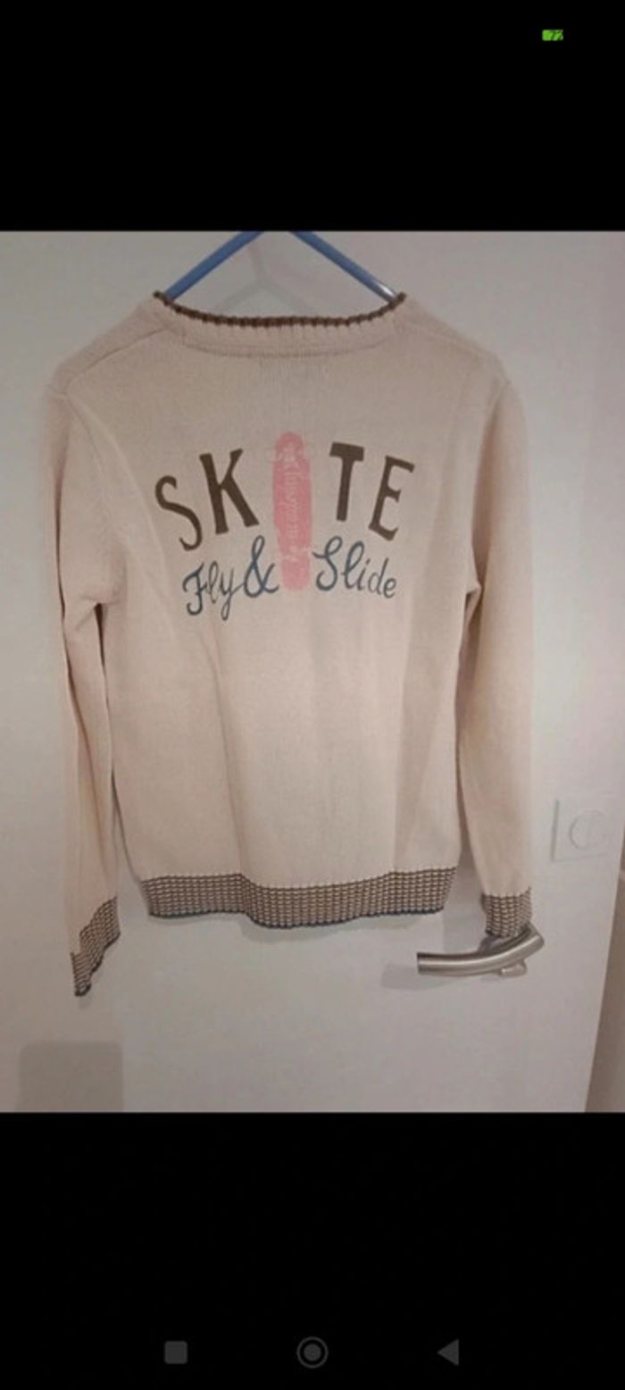 Pull couleur crème 140 cm, inscriptions skate au dos #mariol69110garcon10ans