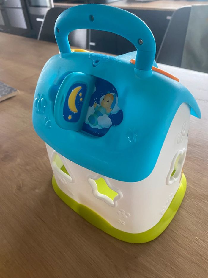 Apprendre à reconnaître les formes et les couleurs, développer sa dextérité Encastrez une forme au bon endroit, la fenêtre s’éclaire de la couleurs et une mélodie retentit,