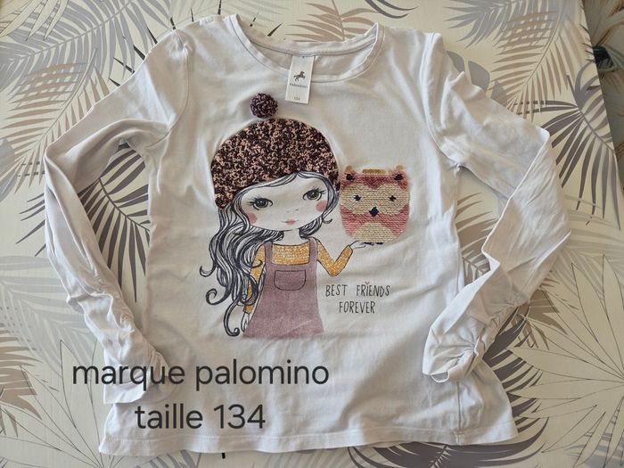 Bonjour Je vends ce tee shirt Le bonnet est en relief doux et le hibou est sequin Marque palomino Taille 134 cm = 9 ans Très bon état N'hésitez pas à faire un lot dans mon dressing Cordialement