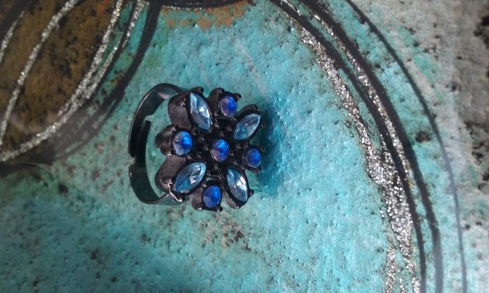 bague à strass bleus femme - photo numéro 1