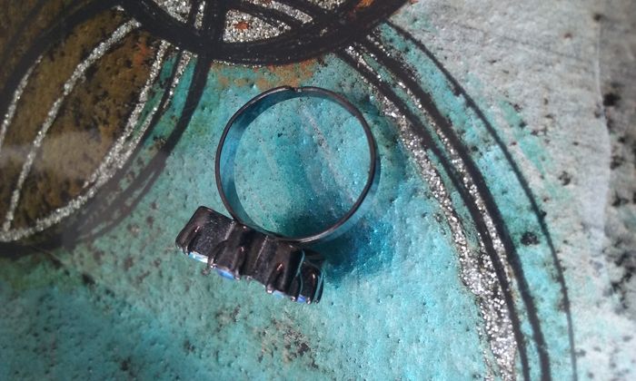 Bague réglable, bleue et noire.