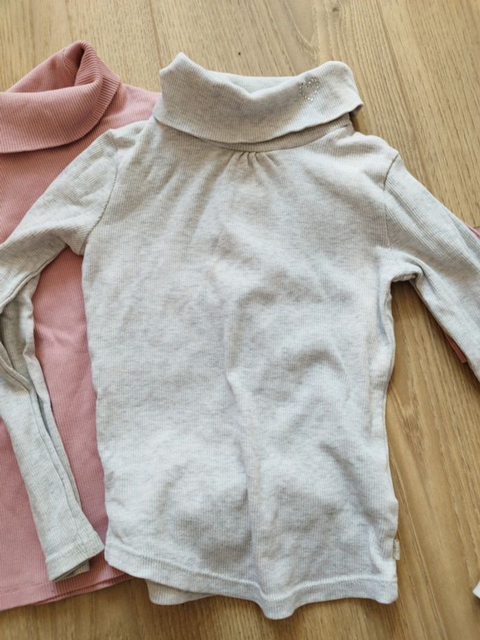 Lot de deux t-shirt fille manches longues à col roulé un couleur gris avec motif cœur sur le col marque Okaïdi et un rose uni marque Gémo effet un peu matelassé tous les deux en très bon état Reduction sur les lois activées #fille #4ans #urgent #reductionsurleslots #demenagement #toutdoitdisparaitre #été #hiver