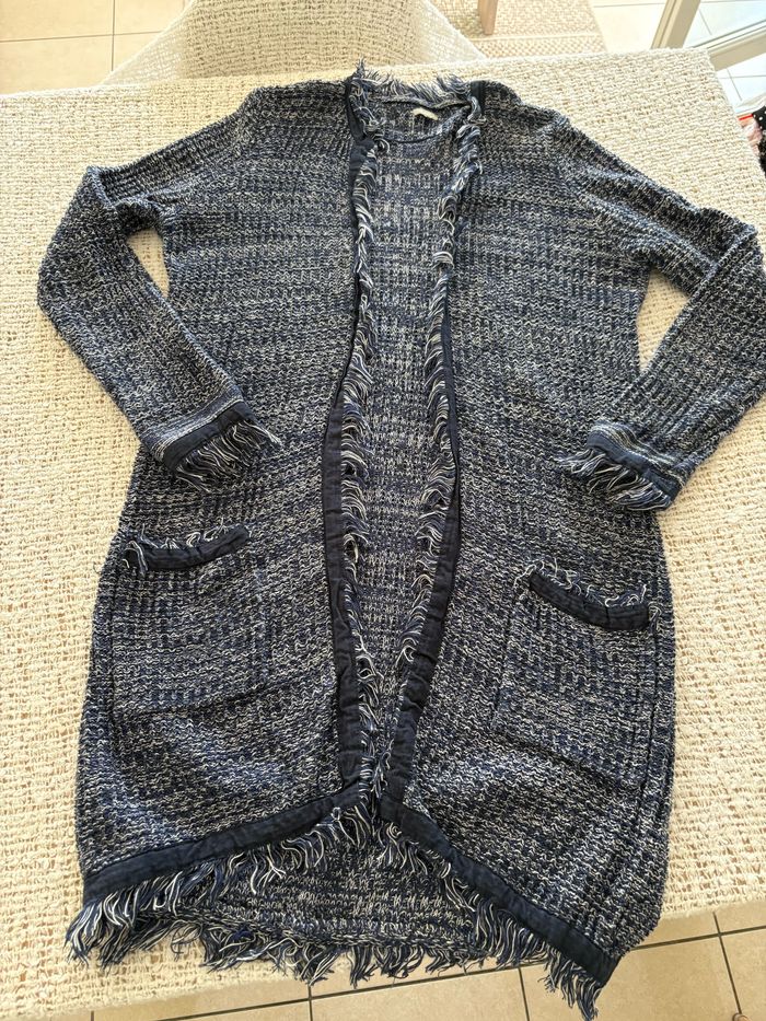 Long gilet bleu « OVS » taille M, très peux porté Longueur 92 cm environ Largeur des épaules 40 cm Mesure prise sous les aisselles 53cm environ #sandra13190femmestailleM