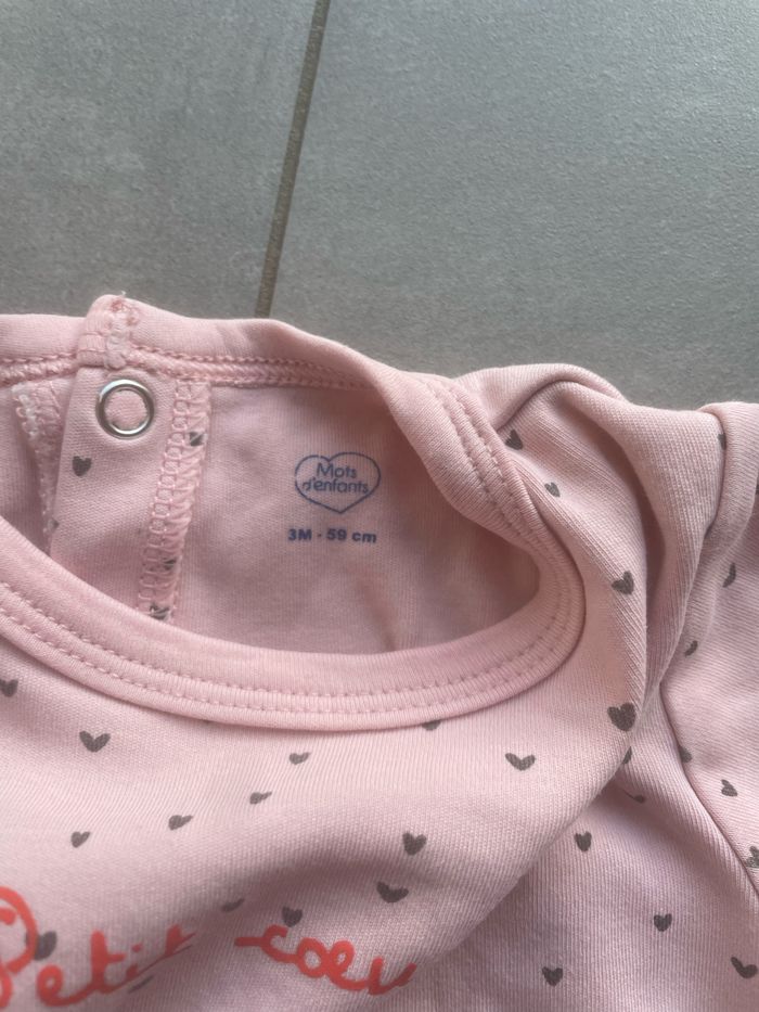 Pyjama rose à motif cœur Kiabi 3 mois En bon état Ouverture dans le dos