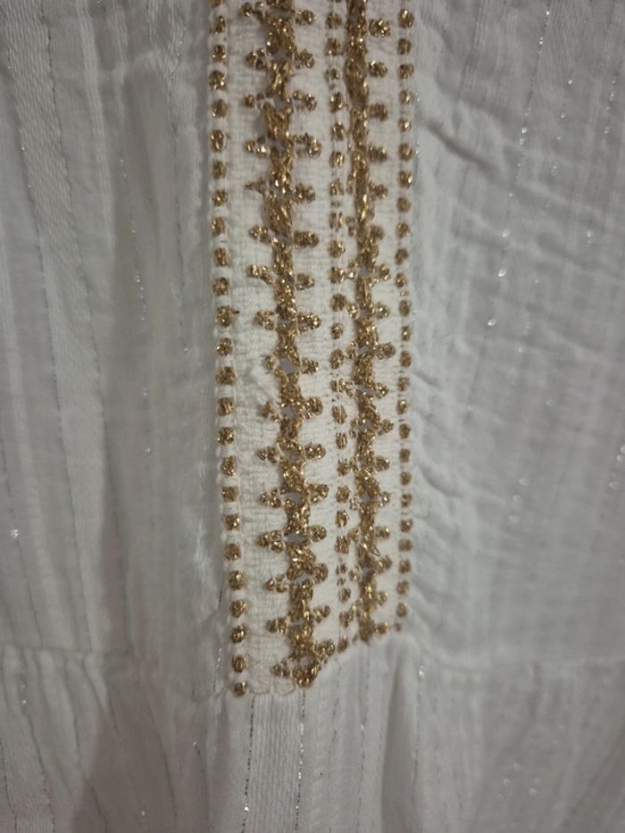 Joli col V avec dorure et liserai argenté. 100%coton #robeété #robefemme #doré #argenté