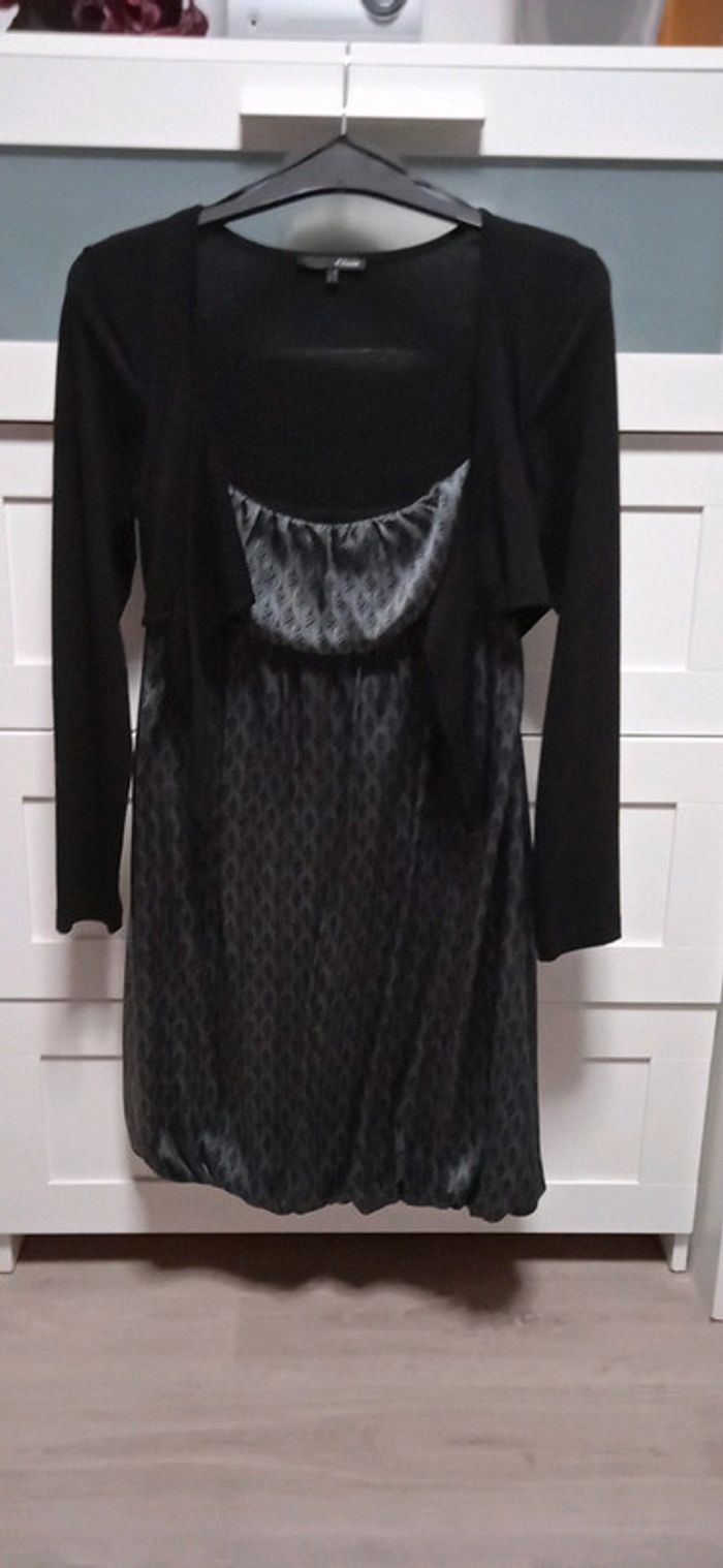 Robe grise et noire Ceintrée sous la poitrine