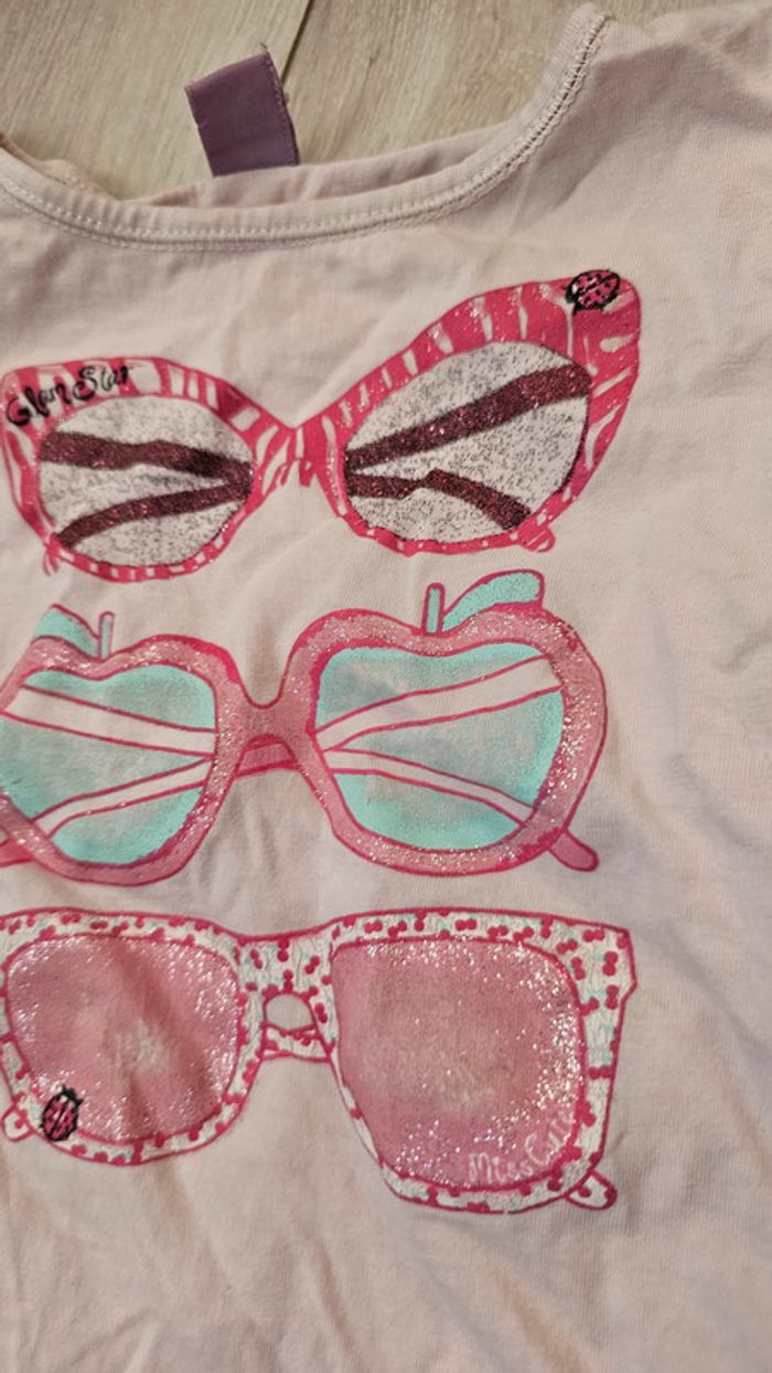 Filles Reine des neiges strass relif fleurs et lunette t shirt manche courte 57#MaggyAmélie#4ans