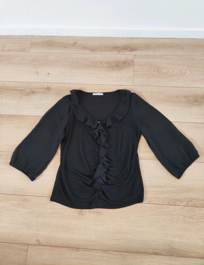 Vend haut noir femme Manches 3/4 Taille : 40 (pas d'étiquette) Marque : Armand Thiery Très bon état #lesfemmesen40