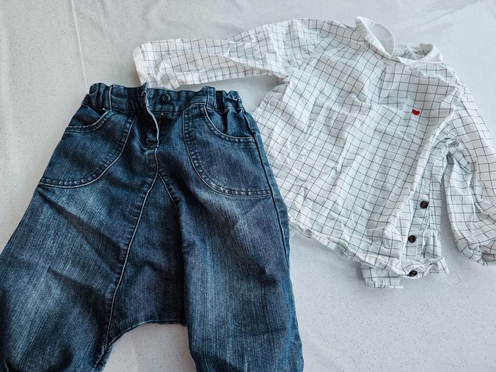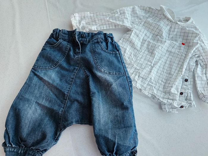 Sublime chemisette col claudine et pantalon sarouel trop mignon porté. 3 ans 57#MaggyAmélie#36mois