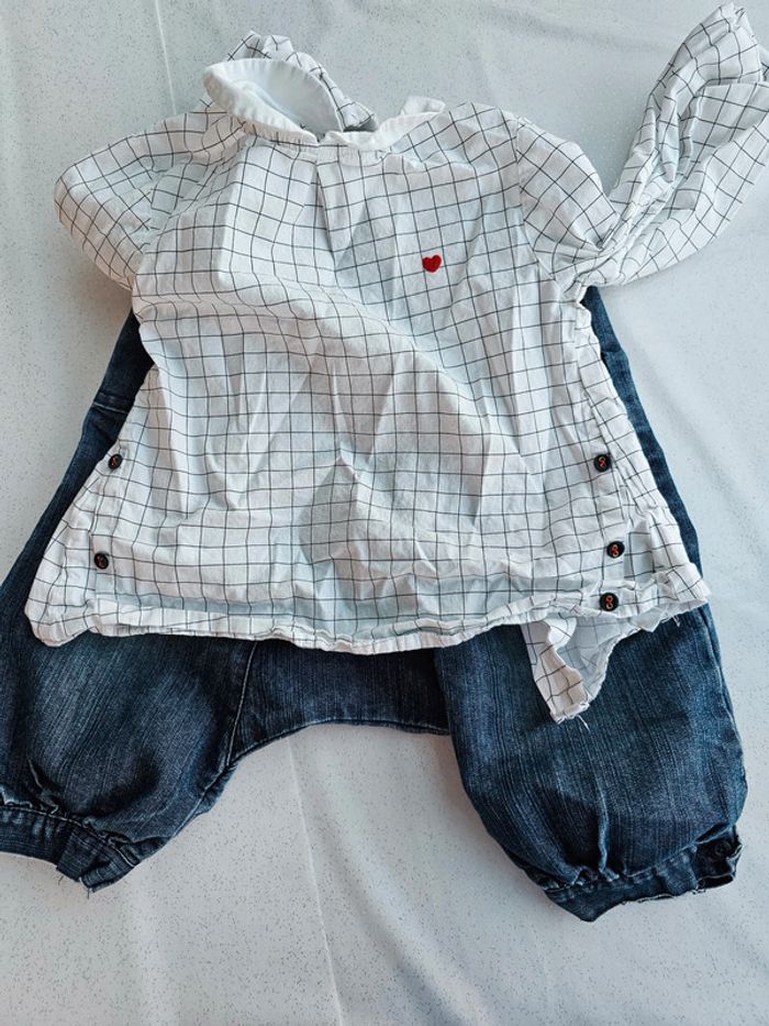 Ensemble pantalon Sarouel et chemisier tunique coeur carreaux 3 ans