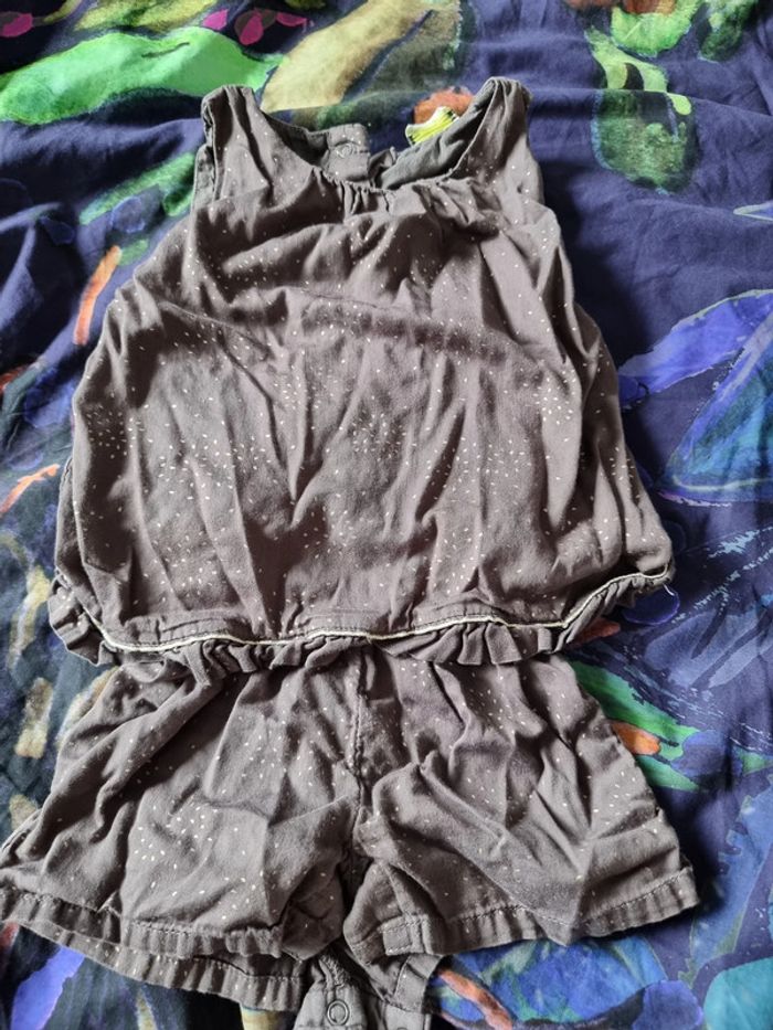 Salopette d'été barboteuse marron à pois