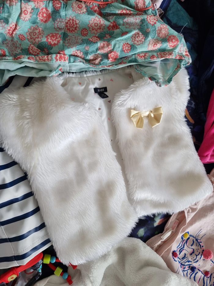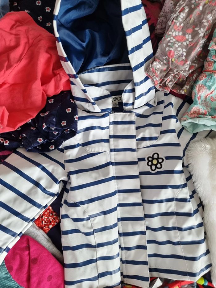 Différentes marques dont Catimini Dpam claire hust Newco tissaia kiabi orchestra... plus de 50 pièces. Certains articles sont neufs comme la turbulette. Les autres sont en très bon état.
