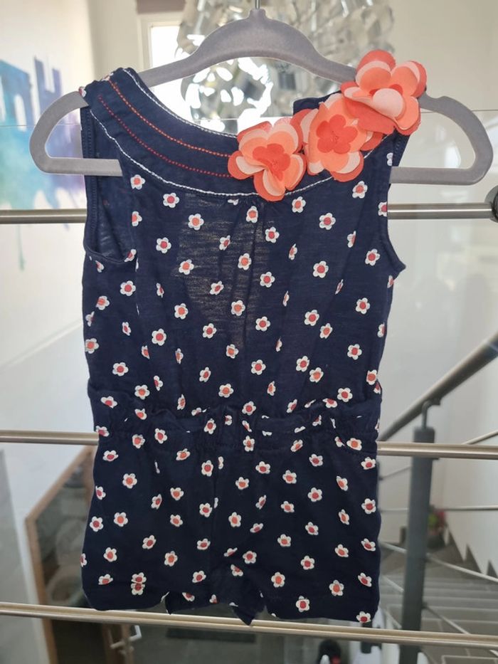 Sublime barboteuse legere été bleu et fleur orange sur le col très jolie