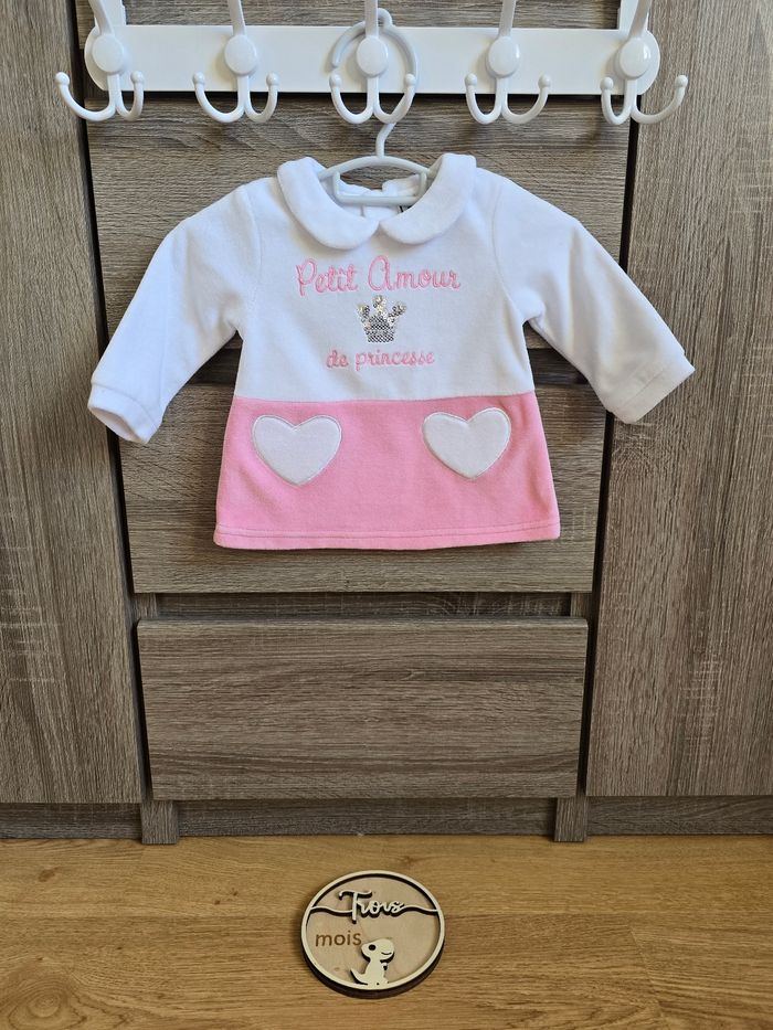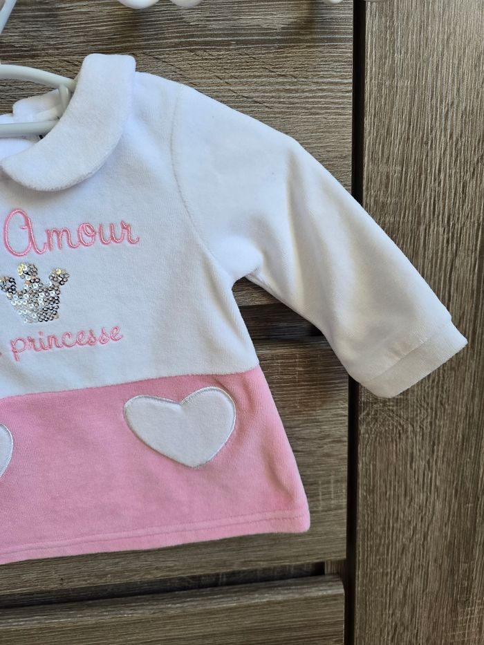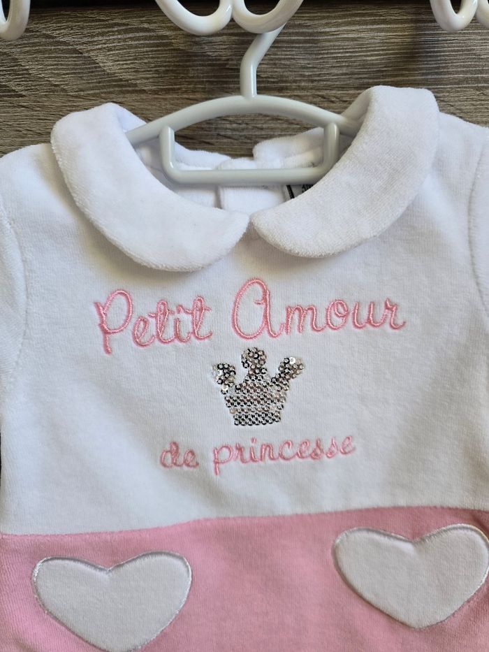 #fdhsarah3mois 📜 Pyjama 2 pièces rose et blanc avec écrit « Petit amour de princesse » Taille 📏 : 3 mois État 🔍 : Très bon état Marque 🏷️ : Inconnue Je suis disponible pour toutes questions ou photos supplémentaires. 📦 L’envoi se fait le plus rapidement possible FR Only 🇫🇷 : Possibilité de passer par KiabiSecondeMain Frais de Port à 0,99€ via Mondial Relay Bon Shopping