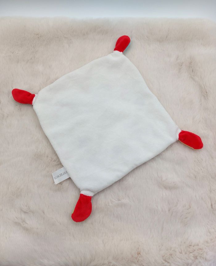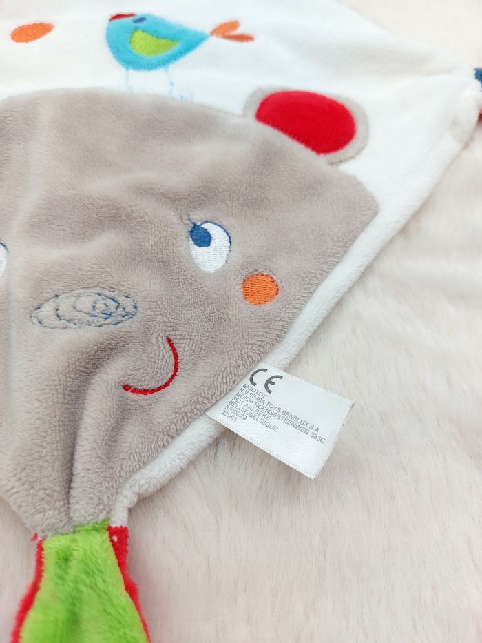 Doudou plat carré blanc ours gris beige oiseau bleu Nicotoy Simba rond orange - photo numéro 1
