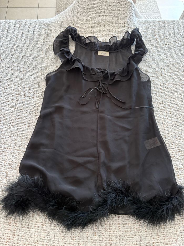 Peignoir noir en voile transparent, s’attache grâce à 2 liens sur le devant « Etam » taille M TBE Largeur mesure prise sous les aisselles 48 cm Longueur 72 cm #sandra13190femmestailleM