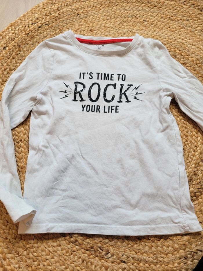 T-shirt à manches longues de la marque Kiabi Taille 8 ans "its time to rock your Life" Petite tache sur une manche