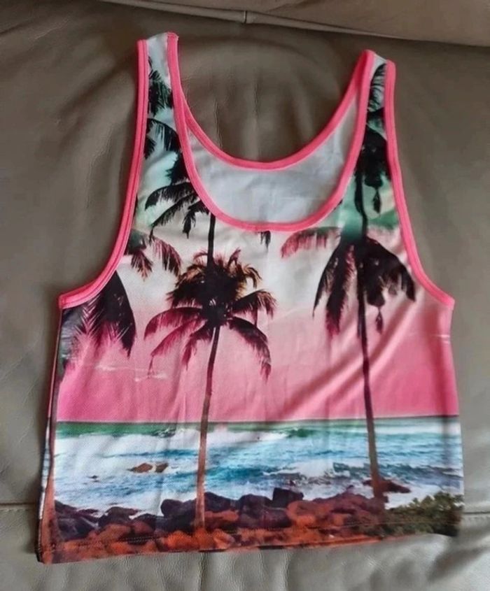 Top rose, ample aux aisselles. Taille XS. Peu porté, état nickel. Donne hyper bien. Dos dégagé sur le haut. Belles couleurs vives. Je le vends au prix de 10 euros. #TailleXS34marine