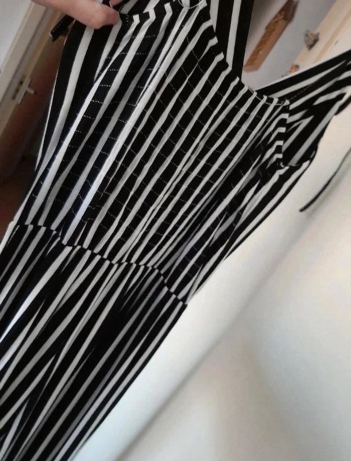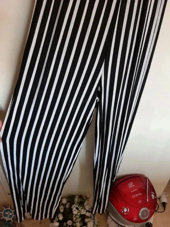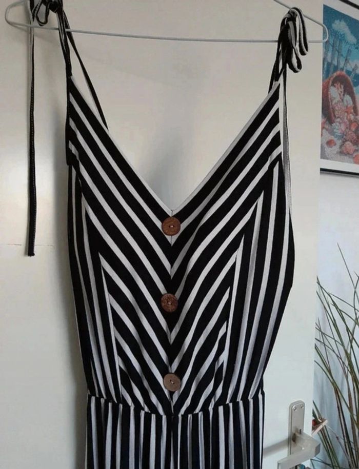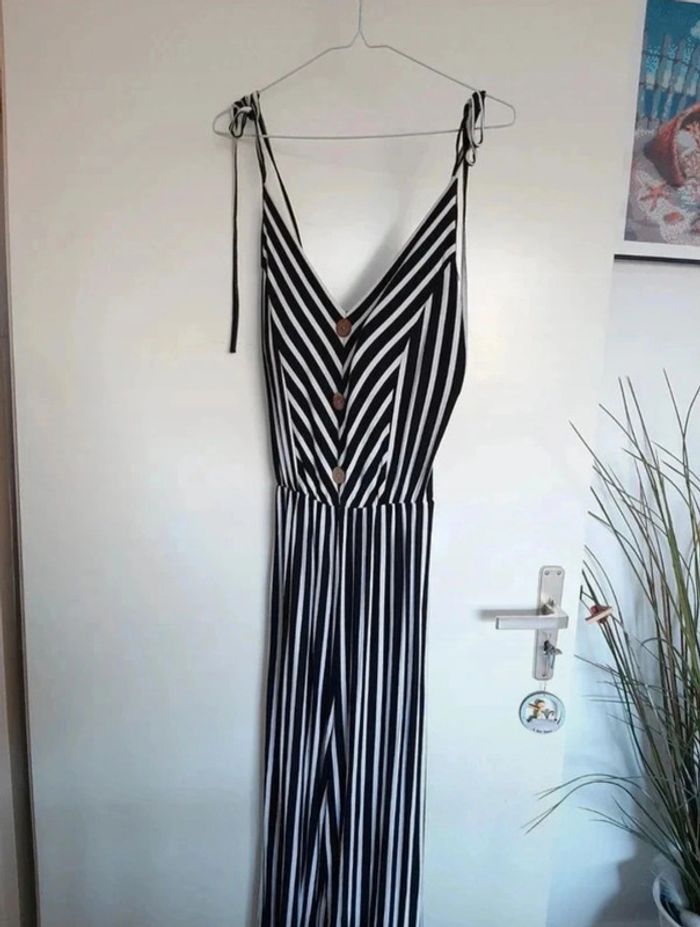Jolie combinaison lignée noire et blanche. Faux boutons. Coques intégrées. Bretelles ajustables. Jambes amples. Ja.mais porté. Taille unique. Je la vends au prix de 22 euros. #TailleUniquemarine