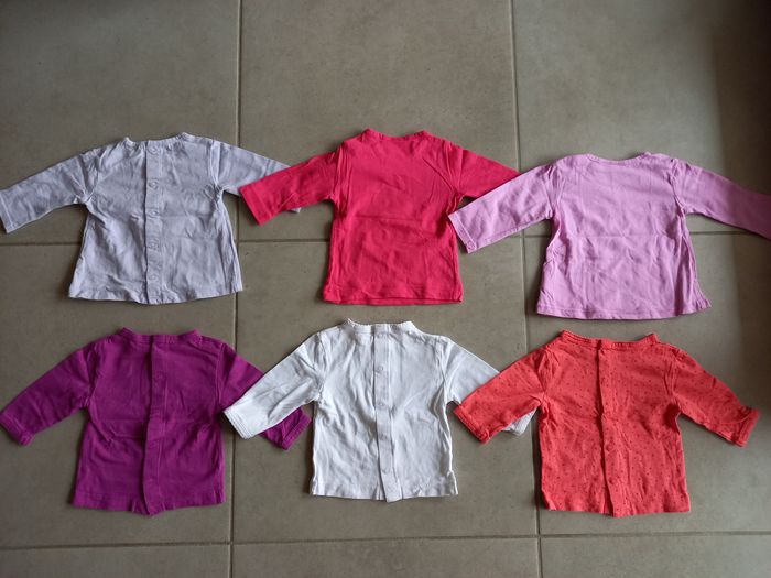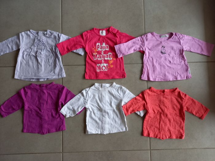 Lot de 6 t-shirts manches longues, pour fille, taille 3 mois. TBE, sauf le blanc qui est un peu jauni au col. 1,50€ le lot.