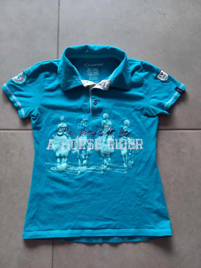 T-shirt d'équitation turquoise de marque Fouganza, taille 10 ans. Bon état. 2€