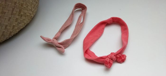 Je vends ce lot de deux bandeaux pour bébé environ 6 mois, de couleur rose clair et corail. #Estelle2150_enfant_accessoires