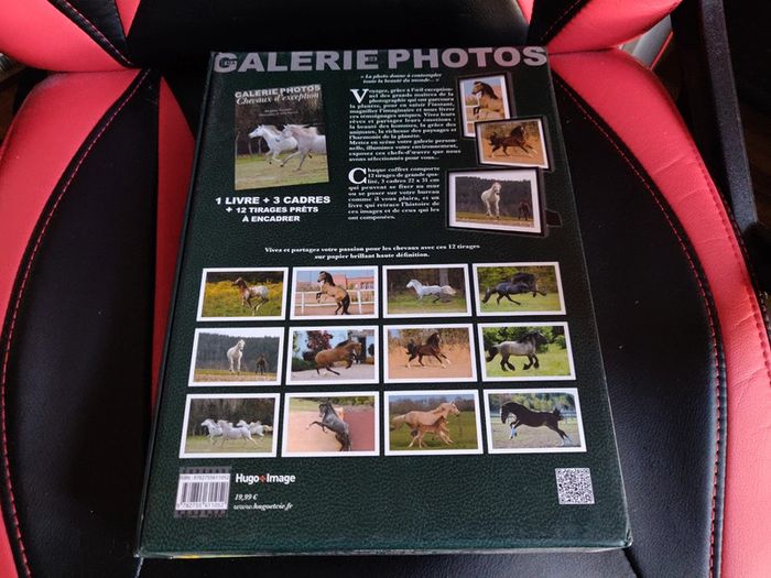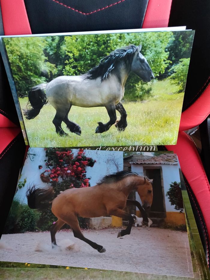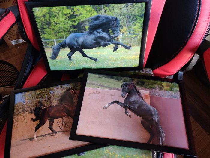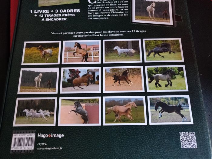 Coffret 12 photos chevaux 3 cadres et 1 livre Photos pour cadres 22*31 cm sur papier photo. 3 cadres compris dans le coffret En parfait état. Envoi soigné