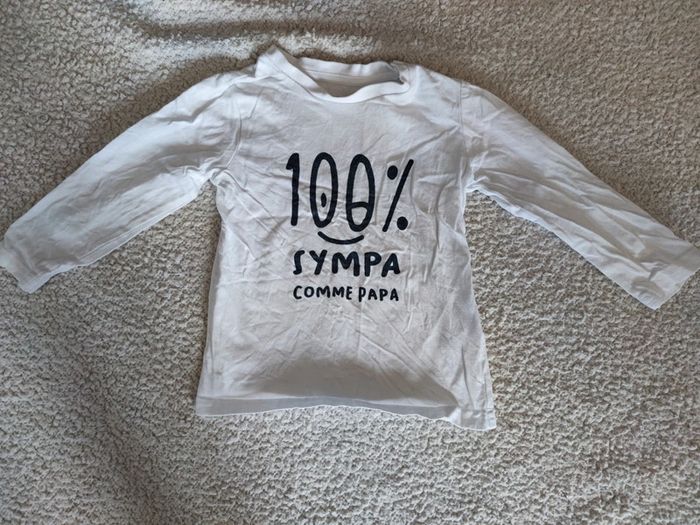 Vends t-shirt manches longues 100% sympa comme papa Gémo Taille 18 mois Déjà porté Sans tâche ni trou 🎁 Un cadeau offert pour toute commande + un cadeau supplémentaire par tranche de 10€ d'achat (hors frais de protection et frais de port)