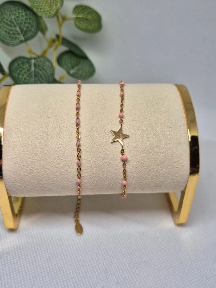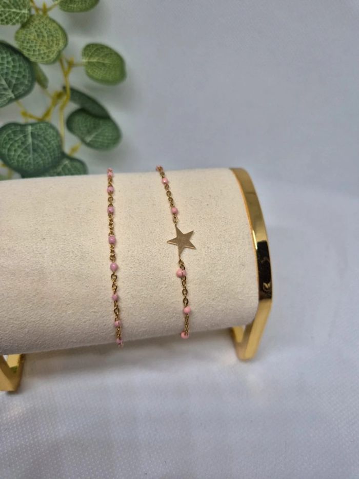 lot de 2 bracelets dorée avec perles : 1 rose ÉTOILE + 1 rose 🌸 acier inoxydable