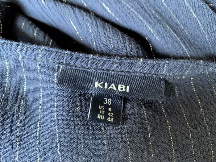 Marque "Kiabi", tissu fluide et infroissable. Style bohème, plus longue au dos. Manches longues poignets boutonnés. Tour de poitrine 92 cm, longueur devant 105 cm, longueur dos 145 cm.