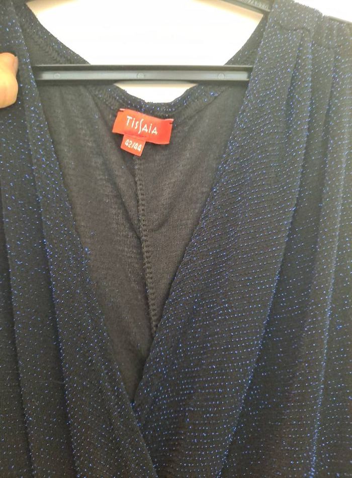 robe cache coeur taille 42/44 tissu noir et fils irisé bleu