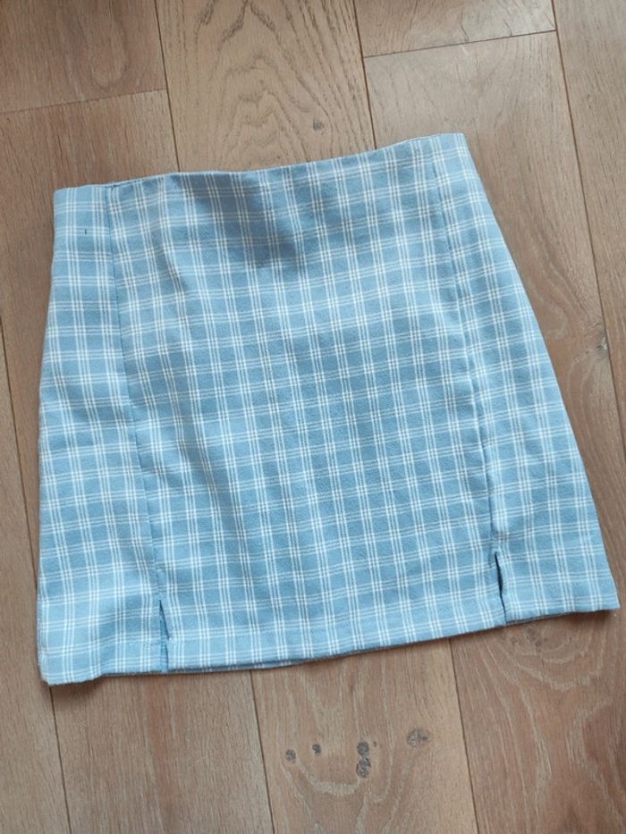 Très jolie minijupe tartan vichy bleu ciel et blanc Boutique parisienne