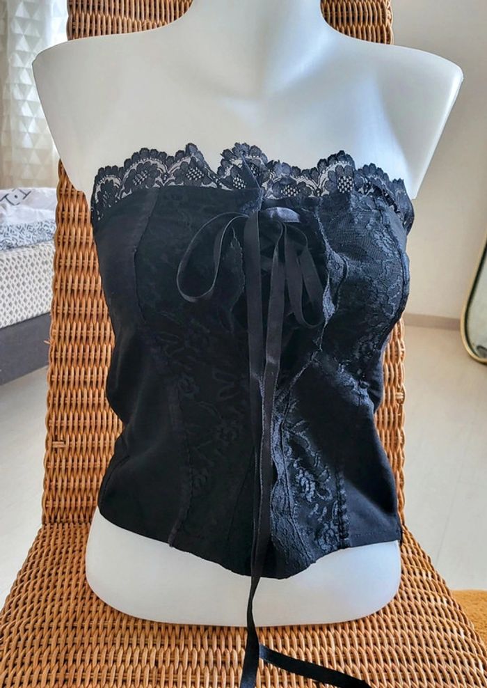Haut bustier noir avec dentelles. L/40FR. 44IT. Top Studio 🥰 - photo numéro 1